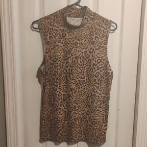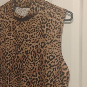 This No Boundaries muscle tee features a bold brown animal print, offering a sleeveless design perfect for casual wear. The high neckline adds a touch of sophistication, while the soft, stretchy fabric ensures comfort throughout the day.