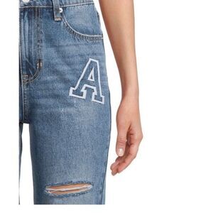 Preowned No Boundaries Blue Distress High Rise Waist Denim Mom Jeans Junior in excellent condition. cotton material