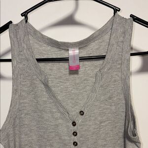 Chic gray tank top with button accents. Ideal for casual wear. Soft and comfortable fabric.