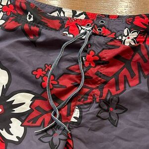 No Boundaries men’s swim trunks gray with red floral print size 34