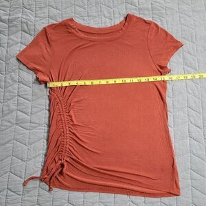 No Boundaries rust tee with drawstring on front right fir asymmetrical effect. Size Large.