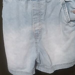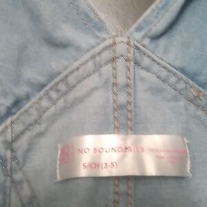 Pre-owned in good used condition. Light wash with pocke on front bib,two front pockets and two back pockets. Can adjust in the front. Has a carpenter hook on left side and belt loops. Fits sizes 3/5
