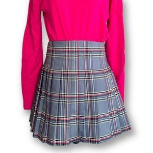 No Boundaries Skirt Micro Mini Gray Magenta Plaid Pleated Retro Tennis Prep