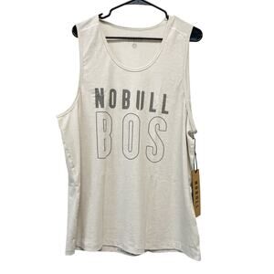 NoBull Men's BOS Print Racerback Tank Top Athletic Cross Fit Beige Size Medium