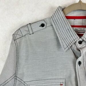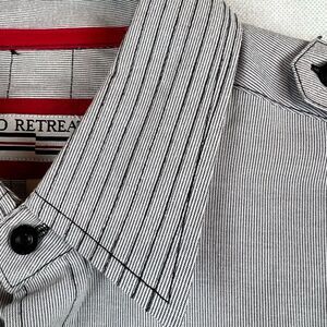 No Retreat Engineer Grey Black Striped Button Up Casual Shirt