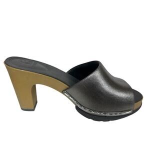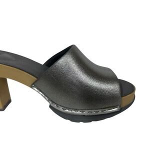 NoSox Polly Womens Retro Pin Up High Heel Sandals Metallic Silver Faux Wood Sz 9