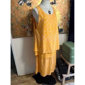 Noa Noa Batik Apricot Sleeveless Layered Hawaiian A-Line Maxi Dress M