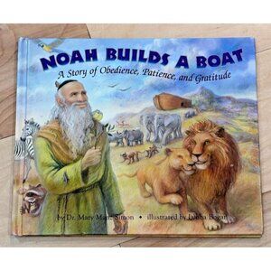 Noah Builds a Boat: A Story of Obedience, Patience, and Gratitude by Dr. Mary Manz Simon, illustrated by Lyuba Bogan. This Golden Books hardcover edition is a beautifully illustrated retelling of the classic Bible story of Noah's Ark, teaching children valuable lessons about faith, patience, and trust in God.