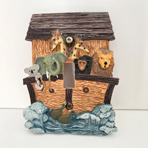 Noah's Ark Baby Nursery Decor Lot- Photo Frame, Light Switch Plate & Figurine