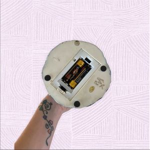 Works great still, just missing the cover for the batteries. Plays music and lights up.
