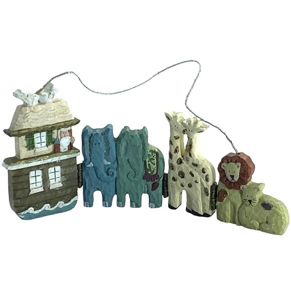 Noah's Ark Ornament 2.75" x 6" 4 Mini Panels Giraffe Lion Elephant Christmas