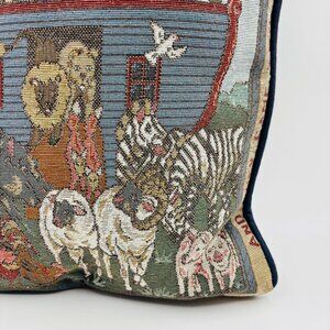 Noah’s Ark Tapestry Throw Pillow Decorative Cushion Animal Theme Vintage