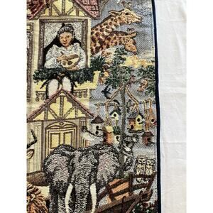 Noah's Ark Woven Tapestry Large Wall Hanging Vibrant Color Animals & Plants 31”