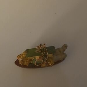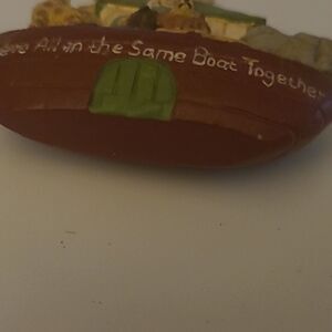 Pre-owned in good condition. It says We are in the same boat together. The ornament is approximately 4.5 inches tall and wide.