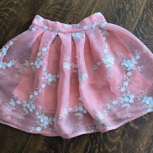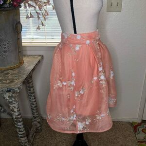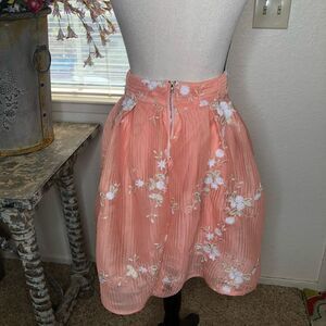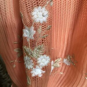 Beautiful coral mesh skirt with embroidery. Couldn’t find much about this brand, but the style is fun and the colors are fresh and feminine. A perfect choice for a wedding or other special occasion. In excellent condition.
