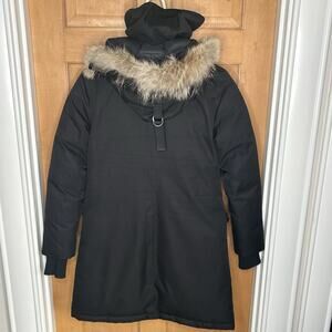 Nobis Down Parka Meredith Women's S Black Fur Trimmed Removable Hood Mid Length