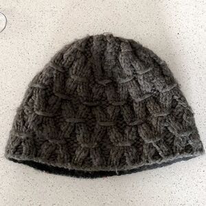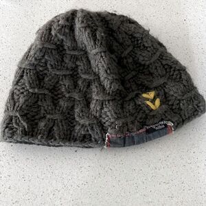 Nobis Smokey Grey Knitted Beanie Hat Yellow Stitching Wool Blend Warm Quality