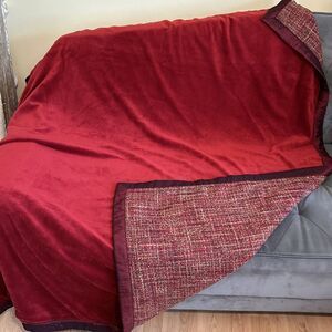 Noble Excellence Tapestry Throw Boucle Maroon Red 50”x60” Reversible Tweed
