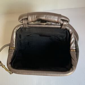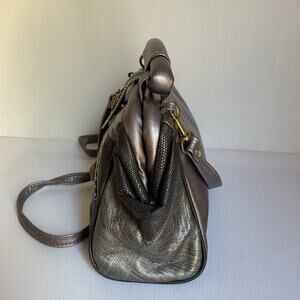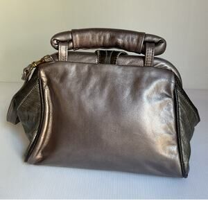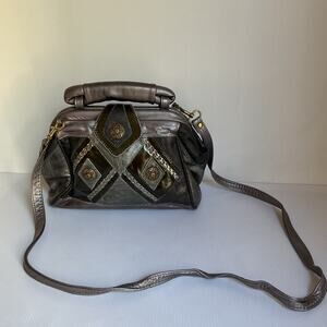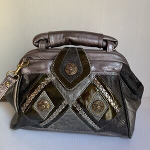 Noble Handbags Genuine Leather Patchwork Satchel Bag Metallic Silver USA Made
