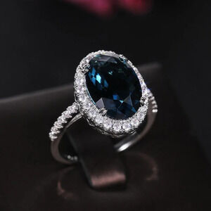 Noble Hollow Anillos Super Large Oval Pure Royal Blue CZ Silver Ring, L263