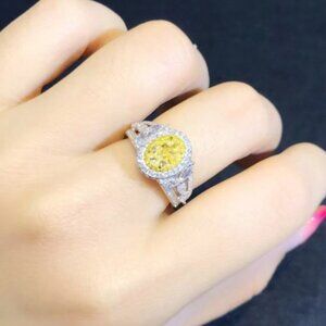 Noble Hollow Beautiful Oval Crystal Royal Yellow CZ Silver Ring for Women, L073