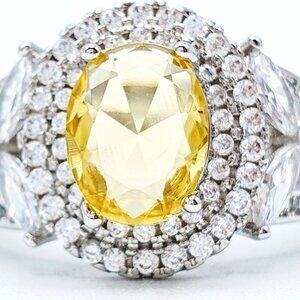 Noble Hollow Beautiful Oval Crystal Royal Yellow CZ Silver Ring for Women, L073