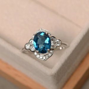 💍 Noble Jewelry Oval Pure Blue Zircon Elegant Rings for Women, PD312