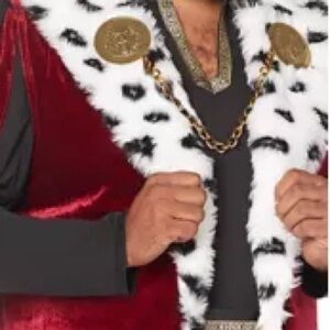 Command the kingdom in regal style ✨ This dramatic Noble King costume features a rich burgundy velvet-style robe with faux fur trim, gold detailing, and royal accessories fit for a true ruler.