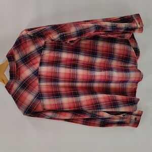 Noble Outfitters Button Down Flannel Size 1X Pink Blue Plaid NWT