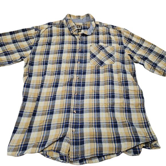 Noble Outfitters Flannel Shirt Mens XL Tall Yellow Blue Plaid Cotton Workwear