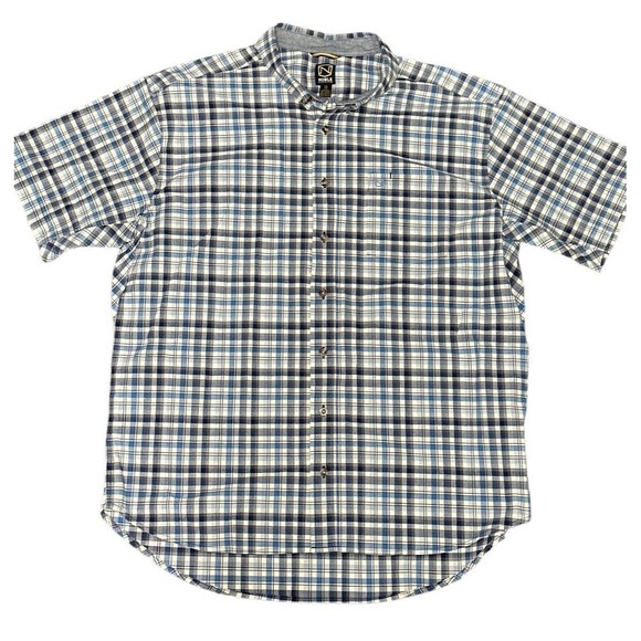 Noble Outfitters Mens XXL Blue Plaid Short Sleeve Button Down Casual 2XL