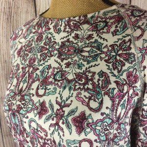 Women's Wanderlust multicolor paisley print 2 way reversible wrap top. Deep v-neckline can be worn in front or in back, long sleeves, drop waist.