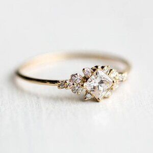 Noble Square Flower Gold Plated Princess Ring for Women, VIP074