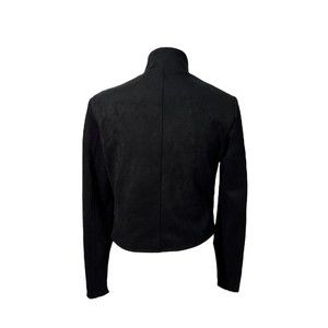 Noble U Black Faux Suede Long Sleeve Open Front Crop Gold Hardware Lightweight Jacket