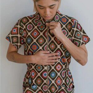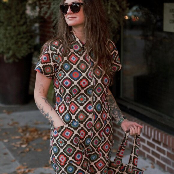 Noble - Adult Utility Suit - Jumpsuit in Granny Cross Stitch Print
