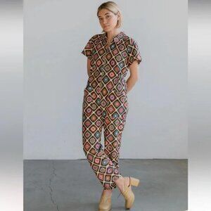 Noble Utility Suit - Jumpsuit in Cross Stitch Print
