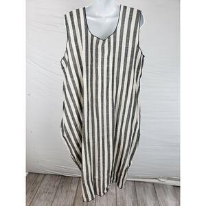 Noblu Alexandra Ilyin Brown & White Striped Dress Size XL Sleeveless Lagenlook