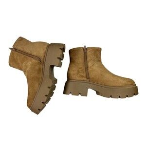 Nobo Chunky Fleece Lined Lug Sole Ankle Boots Size 9 Cognac Y2K Inspired