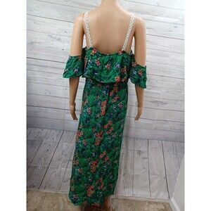 Nobo Green Floral Maxi Dress Juniors Tropical Flutter Sleeve Colorful XL. Condition is Pre-owned. Shipped with USPS First Class.