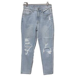 Nobo Jeans No Boundaries Juniors Size 5 Blue High Rise Distressed Stretch Mom