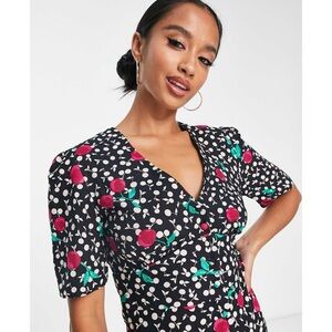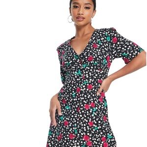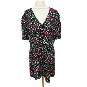 Nobody’s Child Cherry Mini Dress Eco Friendly Viscose Sz UK 16 / US 12 Black NWT