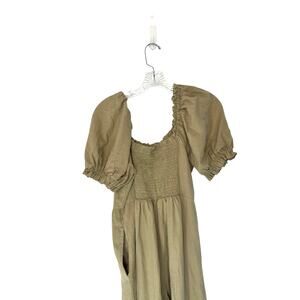 Nobody's Child Jumpsuit Green Smocked Back Short Sleeve Casual Basic. This Nobody's Child jumpsuit is a stylish and comfortable addition to your wardrobe! It features a beautiful beige color, a flattering smocked back, and short sleeves, making it perfect for casual wear.