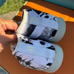 Bold high-top sneakers with a striking black and gray pattern. Ideal for men or woman
