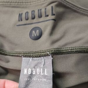 Army green capri length leggings with interior waistband pocket. In good condition with very light pilling in the inner thigh area.