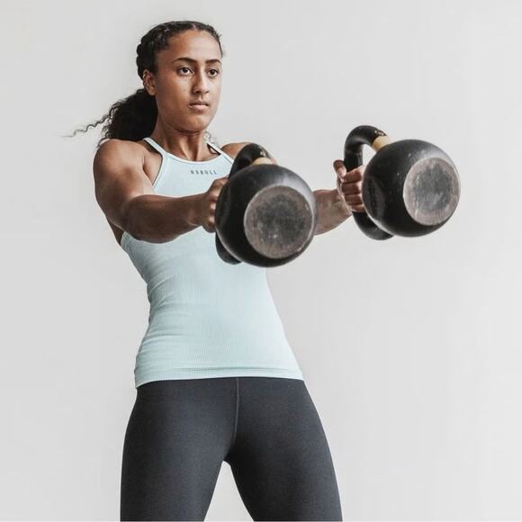 Nobull Womens Light Blue Ribbed Racerback Tank Top S Nylon Blend Size S