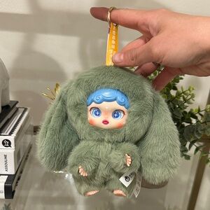 New, missing box. This is a Noci Rabbit Kingdom series plush toy with green fur and blue hair. Adorable plush bunny doll featuring soft green fur and vibrant blue hair. Perfect for imaginative play and cuddling.