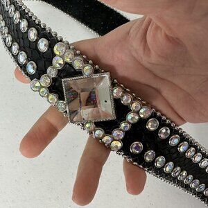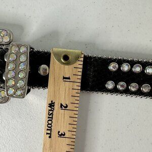 Nocona Black Leather Belt Crystal Rhinestone Aurora Borealis M/L