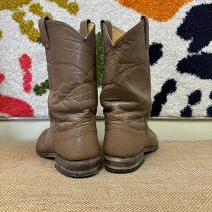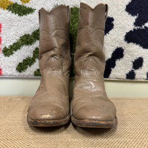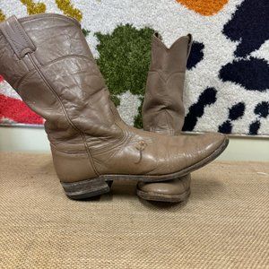 Introducing these charming used Nocona Boots, Ladies Tan Western Boots, adorned with a delicate flower detail on the right boot. Crafted with quality and character, these boots tell a story of past adventures. The tan hue adds a timeless touch, while the unique flower accent on the right boot adds a hint of individuality. Embrace the spirit of the West with these stylish, pre-loved boots that have both character and comfort, making each step a statement of your distinctive style