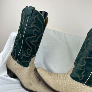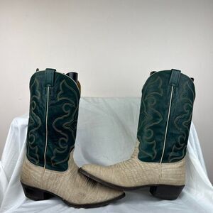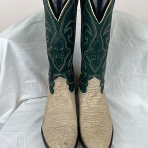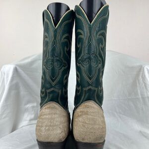 Nocona Cape Buffalo Cowboy Boots Mens Size 11 D Leather Western Green Beige