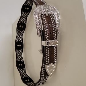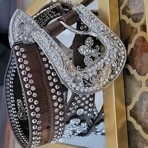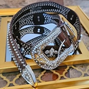 Nocona Fleur de lis Ryan stone studded belt on leather